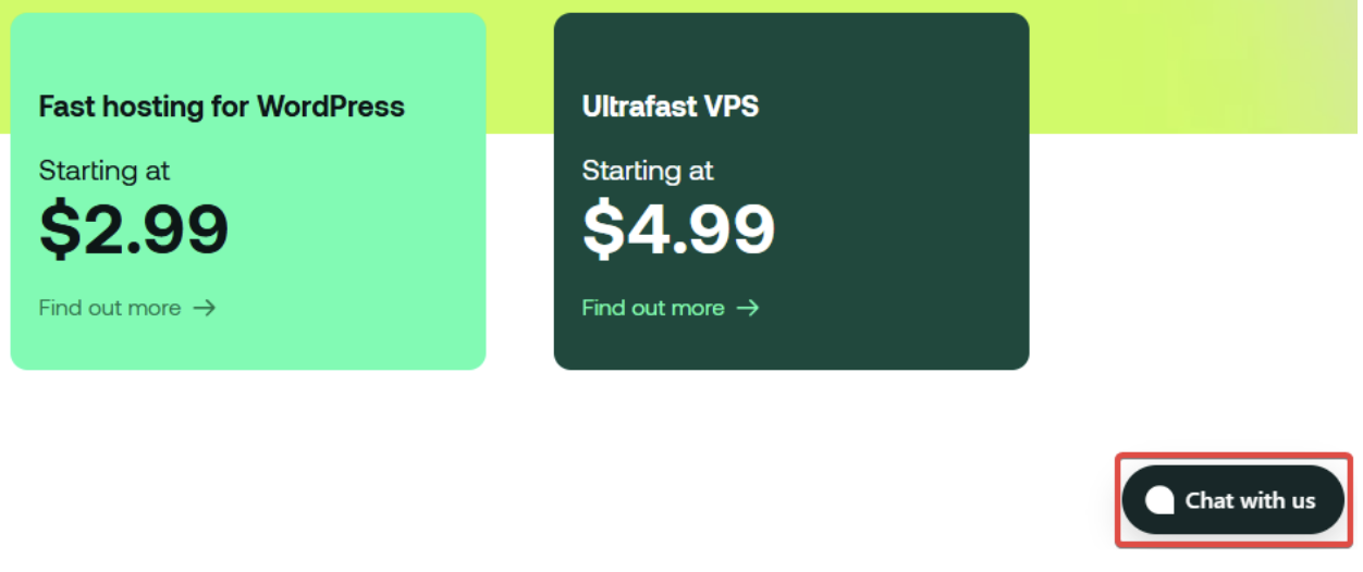 You can reach our chat support team from any page on hosting.com. No matter where you are on the website and you will always be able to ask a member of the team anything you want to know more about - from products to pricing and technical capabilities. Simply click the button in the bottom right corner of your screen.