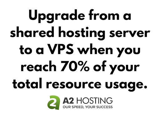This is a question we get a lot, so we want to give you the right answers. We always recommend the 70/30 rule. What this means is that you want to upgrade from a shared hosting server to a VPS when you’re reached 70% of your total resource usage for all of your resources combined (RAM, disk space, CPU, and bandwidth).