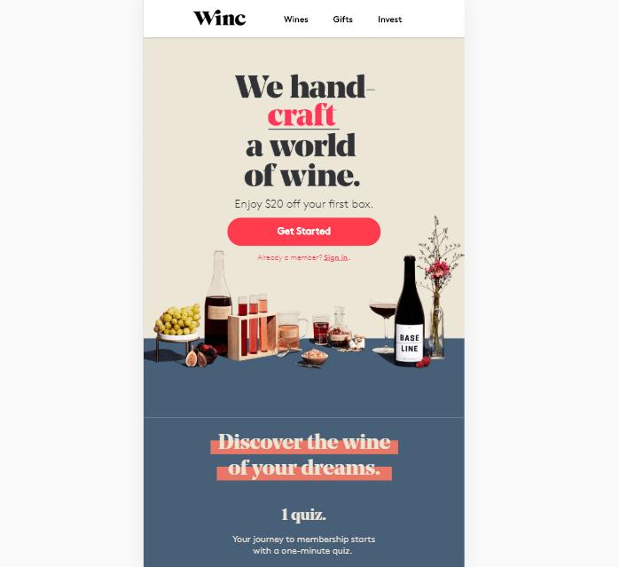 The anatomy of most landing pages is simple – they’re built to keep you scrolling down until you reach a Call to Action (CTA). To do this, the design of the page itself needs to ‘push’ you along.