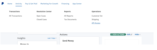 Log in to your PayPal account, then click Activity on the top menu bar and select API Access.