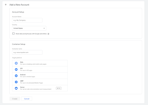 Sign up for the Google Tag Manager using the same account used for the Google Analytics account.