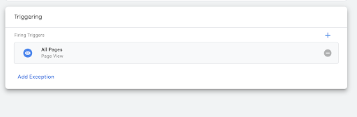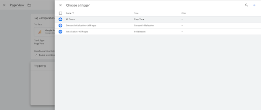 Next on the Trigger section, choose the trigger type. Here we will choose the Page View trigger for All Pages: