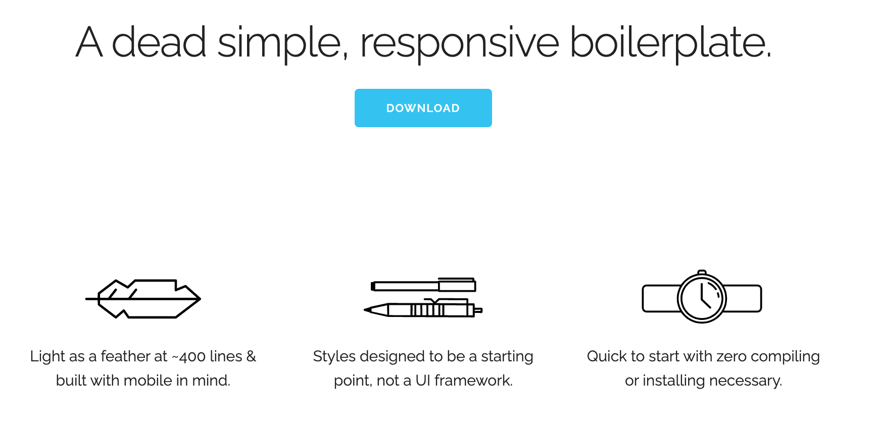 The Skeleton framework is a small collection of CSS files that you can use to rapidly generate clean code and simple layouts. Coming in at under 400 lines of code, this bare-bones framework is a good fit for smaller projects, or projects that don’t require the utility of a larger, heavier solution.