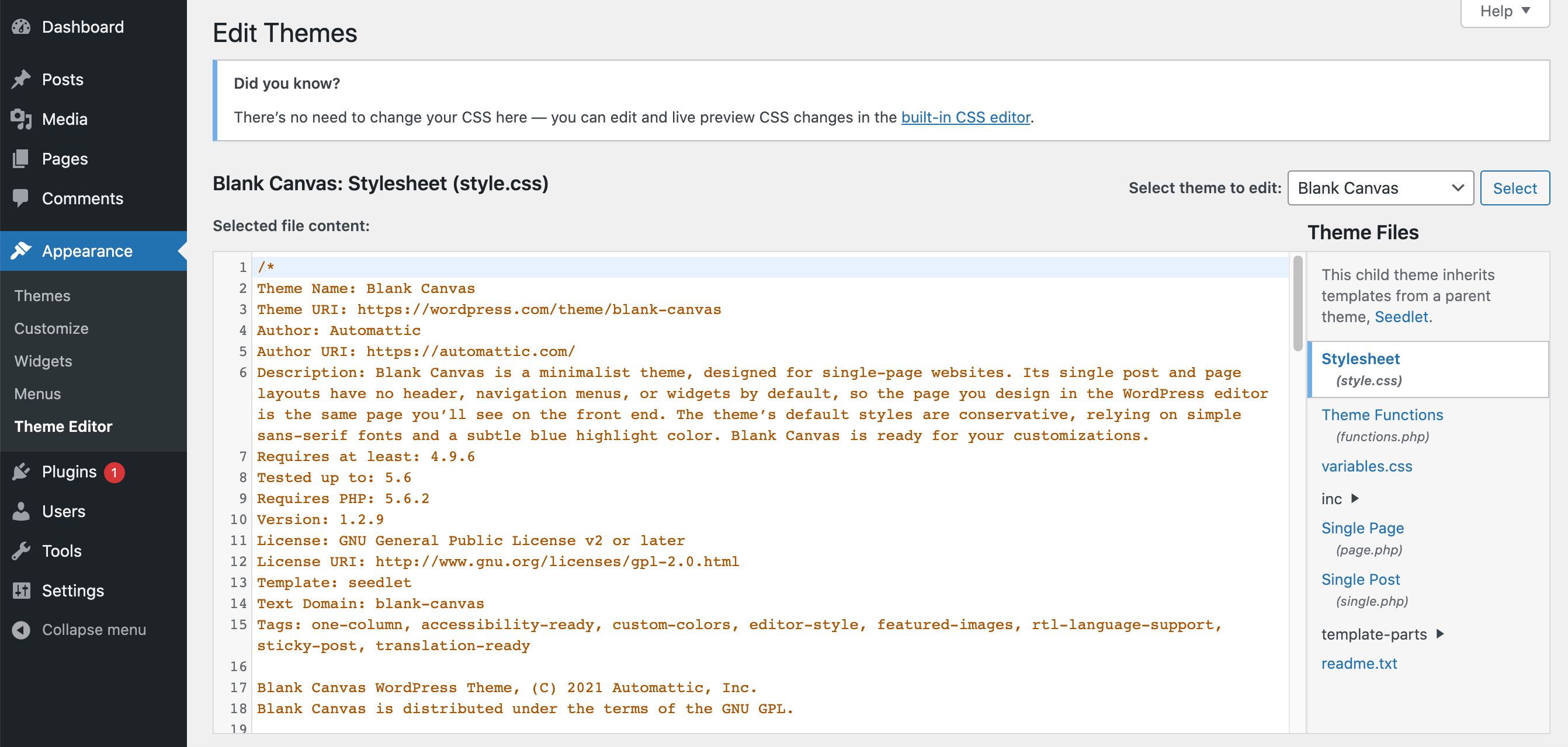 Many different systems use CSS. This includes WordPress themes, which uses CSS to output the data generated by this popular Content Management System (CMS). Every WordPress theme contains a single style.css file: