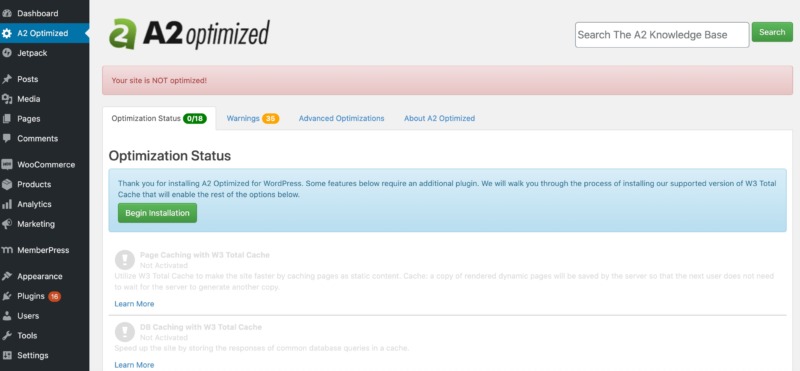 You can then select Begin installation > Activate > Start Configuration. Hosting.com Optimized will now scan your site and suggest some ways to improve your website’s performance.