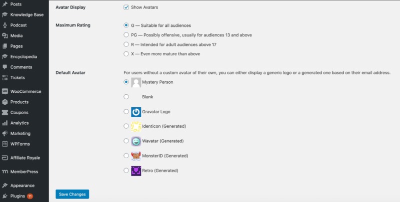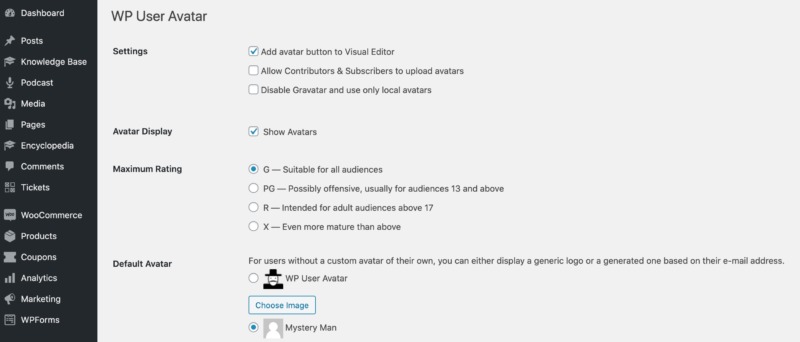 Now, deselect the Show Avatars checkbox. Alternatively, you can switch to locally-hosted avatars using a plugin such as WP User Avatar. After activating this plugin, make sure you navigate to Avatars > Settings.
