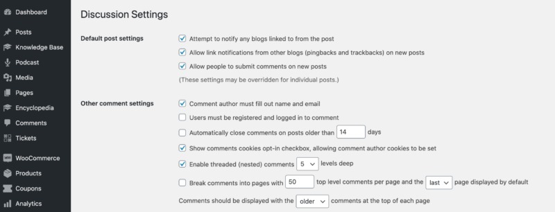 If you stick with WordPress’ native commenting system, you might want to limit the number of comments displayed on initial page load. To set this limit, navigate to Settings > Discussion in the WordPress dashboard.