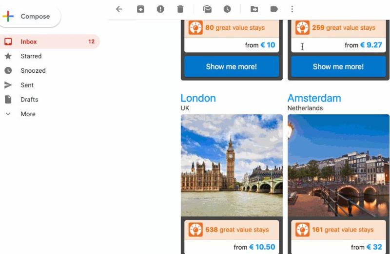 With AMP emails, you can also add interactive content to your messages. For example, users might be able to respond to an event invite without leaving their inboxes, or book a movie ticket right from an email.