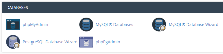 To access your website's database via phpMyAdmin, look for the Databases section within your cPanel. Then, click on the phpMyAdmin button: