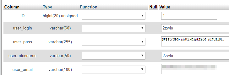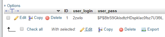 Each table, in turn, is made up of rows, just like a spreadsheet. You can directly edit, copy, and delete any row you want using phpMyAdmin, although that's not recommended unless you know it's safe to do so: